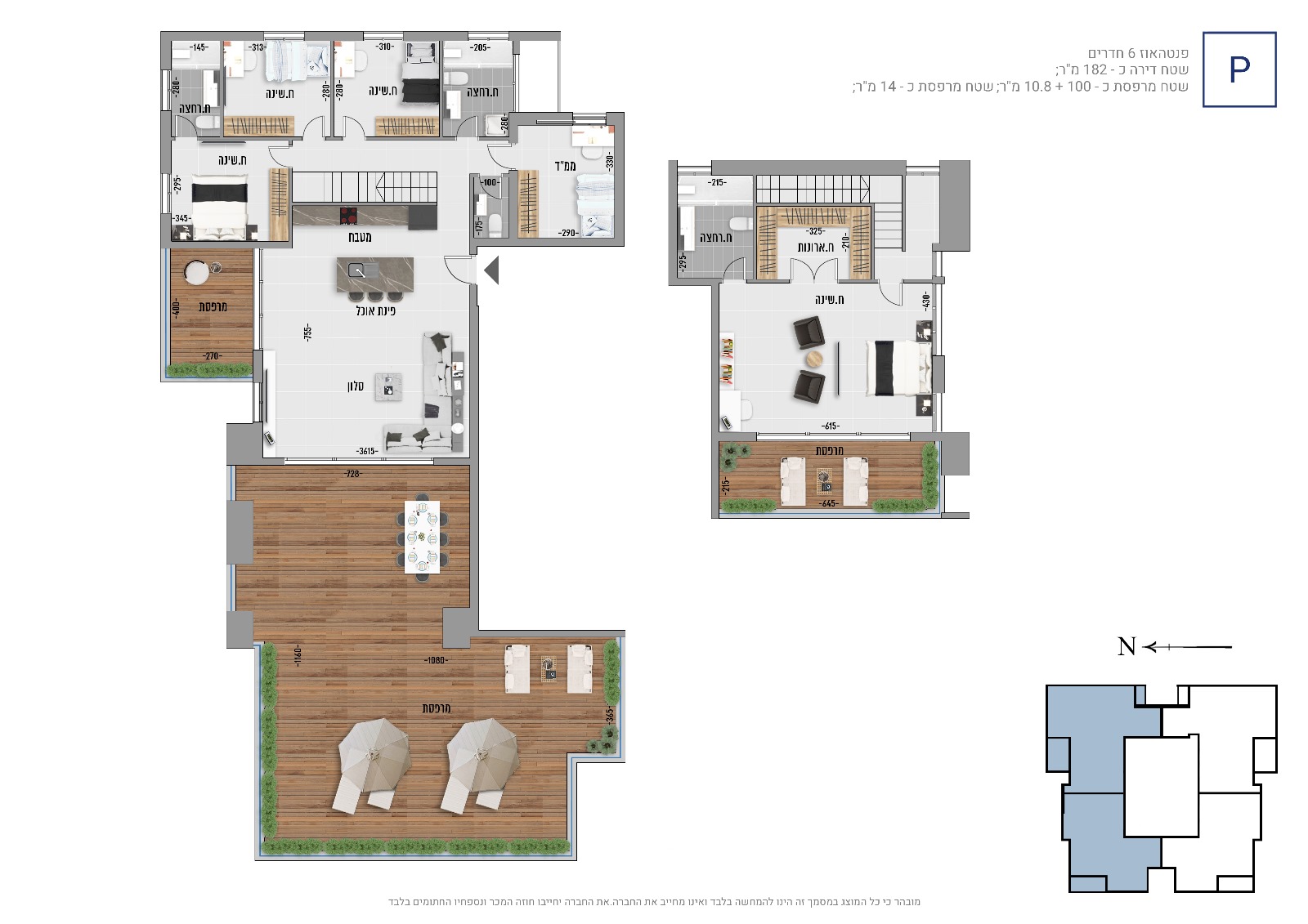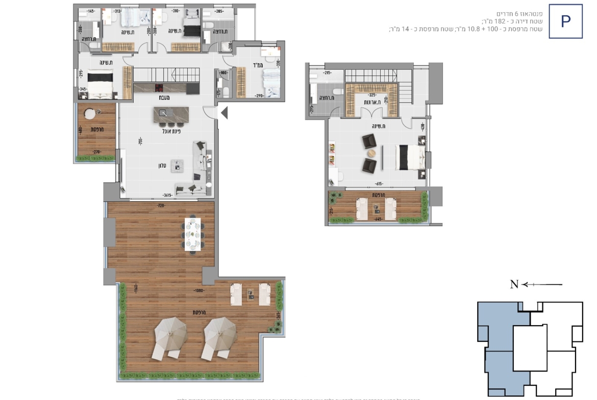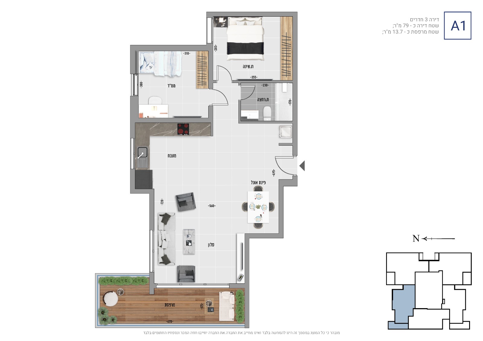 La superficie varie de 75 m2 à 115 m2 avec des terrasses de 14 m2