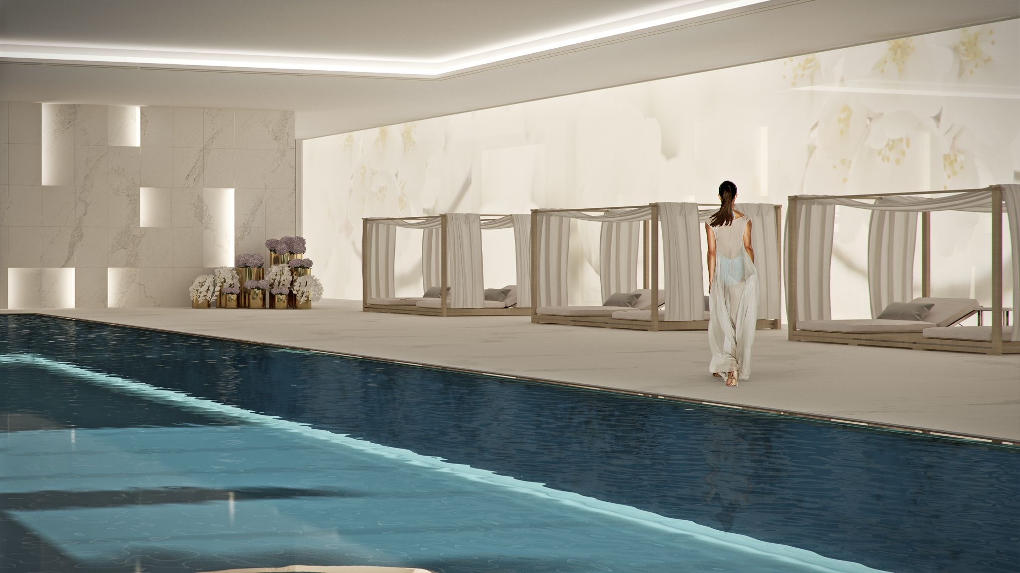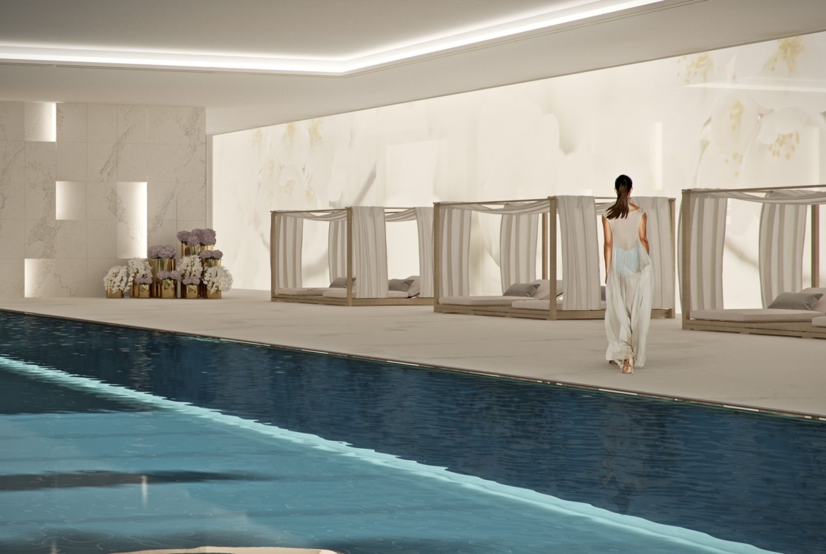 Prestations de l’immeuble : piscine, sauna, spa, hammam, salle de sport, cave à vin, squash