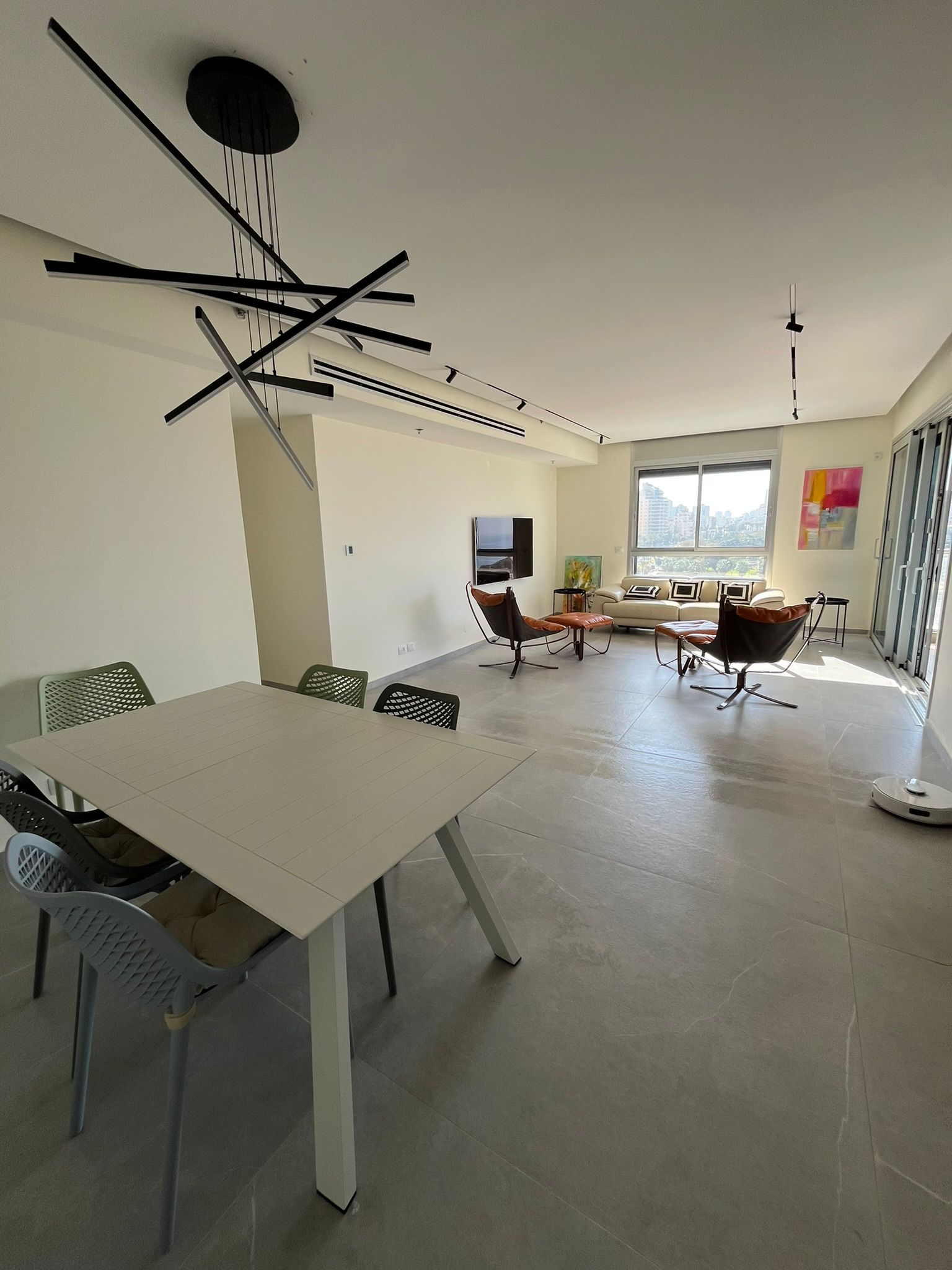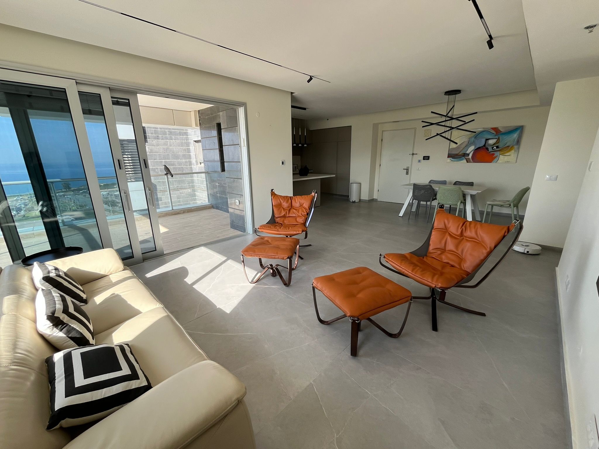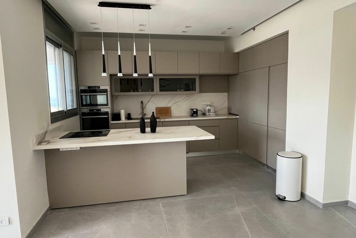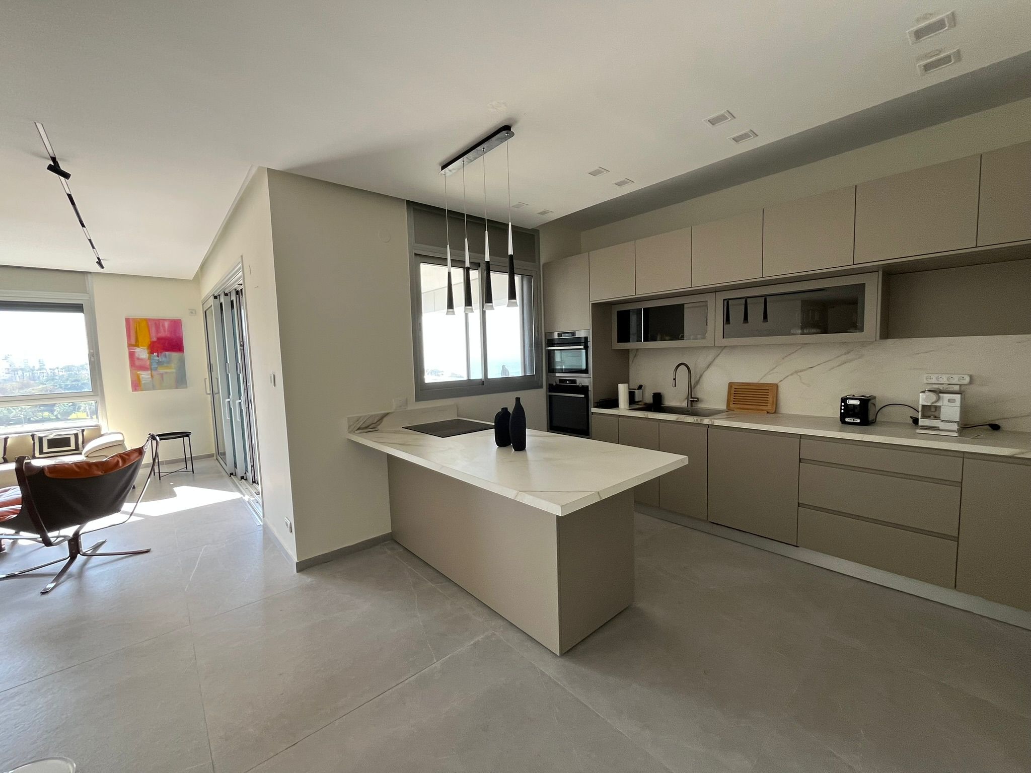Salon lumineux et spacieux, cuisine moderne entièrement équipée